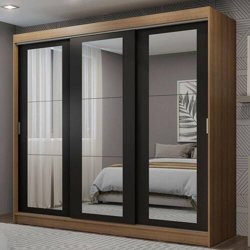 O Guarda-Roupa Kansas da Madesa possui três portas de correr com deslizamento suave, trilhos em alumínio para maior resistência e dois puxadores externos. Além disso, todas as portas possuem espelhos, que deixam o móvel muito mais bonito e ampliam o ambiente.
