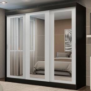 O Guarda-Roupa Kansas da Madesa possui três portas de correr com deslizamento suave, trilhos em alumínio para maior resistência e dois puxadores externos. Além disso, todas as portas possuem espelhos, que deixam o móvel muito mais bonito e ampliam o ambiente.