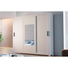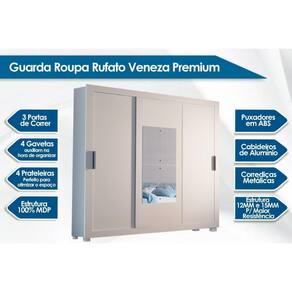 Guarda Roupa Casal 3 Portas de Correr e 4 Gavetas c/ Espelho e Pés Veneza Premium Branco - Rufato