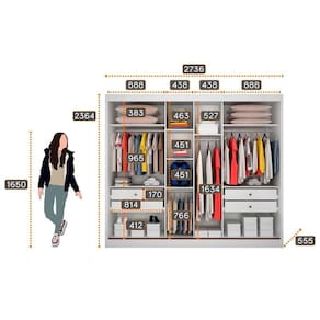 Dimensões(Cm): Comprimento(Profundidade): 56cm x Largura: 274cm x Altura: 236cm