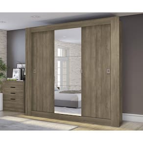 Seu quarto prático e organizado com o Roupeiro CBH563 da Kappesberg. Compacto, são três portas e 2,10m de altura, 1,70m de largura e 55cm de profundidade, todo produzido em chapa MDP de 15mm, o que garante mais robustez e qualidade. E com sete camadas de pintura na cor nogal, na parte interna e externa, seu acabamento touch, com a textura dos veios da madeira, garante a sensação de conforto e aconchego ao espaço. Com uma divisão interna entre nichos de tamanhos diferentes, ideais para guardar calçados e roupas dobradas, e um cabideiro metálico de suporte interno, você organiza peças maiores, como casacos e vestidos sem amassar. O destaque fica para a moldura em torno do roupeiro, garantindo um design único, e seu espelho de corpo inteiro, proporciona um acabamento lindo. Acabamento da Prateleira: Pintura Escala de Brilho da Prateleira: Fosco Possui Cabideiros: 01 Acabamento da Porta: Pintura Escala de Brilho da Porta: Fosco Material do Puxador da Porta: Metal Acabamento dos Pés: Pintura Altura do Espelho: 60 cm Altura dos Pés: 10 cm Altura Máxima dos Pés: 10.0000 Ambiente Principal: Quarto codigo_ean: 7909903623664 Complexidade da Montagem: Média: pode ser montado por mais de uma pessoa e/ou necessite de maior conhecimento para montagem Cor: Nogal Cor do Produto: Nogal Cor Interna: Nogal Escala de Brilho: Fosco Espessura do Espelho: 3 mm Fita Integrada: Sim Formato do Espelho: Retangular Guarda-Roupa Suporta Até (kg): 40 kg Itens Inclusos: 1 Roupeiro, manual de montagem e ferragens. Largura do Espelho: 49,5 cm Linha ou Coleção: DORMITORIO SLIDING Manual de Montagem e Instalação: https://product-hub-prd.madeiramadeira.com.br/898860/documents/9c8ed19e-b018-4f5c-91fa-05f5d61b7cb11871001h563.pdf Material da Porta: MDP Material da Prateleira: MDP Material dos Pés: MDP Material Principal: MDP modular: Não Necessita Montagem: Sim Origem do Produto: Nacional Peso: 93 kg Peso Máximo por Prateleira: 7 kg Possui Calceiros: Não Possui Espelho: Sim Possui Pés: Rodapé Possui Portas: Sim Possui Prateleiras: Sim Produto Montado: Sim Quantidade de Espelho: 03 Espelhos com Tamanhos Iguais Quantidade de Prateleiras: 04 Prateleiras Recomendações de Uso, Manutenção e Limpeza: Use um pano limpo e ligeiramente umedecido em água ou álcool (recomendamos álcool etílico hidratado). Logo após, seque a superfície com um pano seco e macio. Em grandes superfícies limpe pequenas áreas de cada vez, trabalhando de baixo para cima. Sapatas Niveladoras: Não Sistema de Montagem: Sistem aPhilis e Minifix Tipo de Dobradiça/Corrediça da Porta: Metálica Tipo de Fixação do Espelho: Fita Dupla Face Tipo de Guarda-Roupa: Solteiro Tipo de Puxador da Porta: Externo
