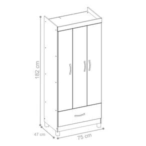 Produzido em MDP. Acompanha cabideiros em madeira, puxadores cromados e pés em PVC