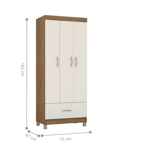 Produzido em MDP. Acompanha cabideiros em madeira, puxadores cromados e pés em PVC