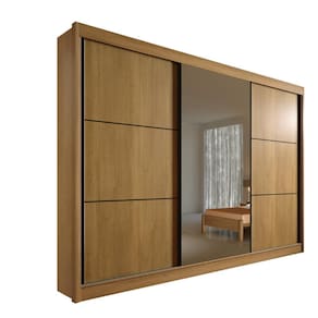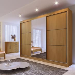 Cor: Cinamomo. Material de composição: 100% MDF. Necessita de montagem profissional. Corrediça telescópica 40cm Quantidade de portas: 3 Puxadores de alumínio. Espelho com película de segurança. Roldanas com mola. Quantidade de cabideiros: 3. Suporte cabide metálico. Quantidade de gavetas: 6. Profundidade da gaveta 40cm. Abertura total da gaveta. Gavetas com puxador. Produzido com chapa de 15mm e 25mm.