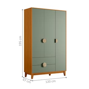 Feito em MDF.Possui 2 gavetas com corrediça telescópicas, 3 portas, 1 cabideiros e 5 prateleiras