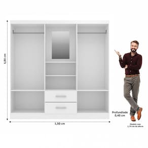 Confeccionado com materiais de qualidade, o guarda-roupa CAPELINHA possui 4 portas, 2 gavetas e espaços para deixar os seus pertences arrumados e sempre à mão.
