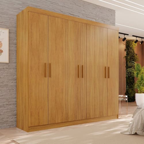 Este guarda-roupa elegante possui seis portas de bater que facilitam o acesso ao seu interior, otimizando o uso do espaço. Com quatro gavetas espaçosas, oferece praticidade na organização de roupas e acessórios. Seu design moderno e funcional se adapta a diversos estilos de decoração. Feito com materiais de alta qualidade, combina durabilidade e sofisticação. Acabamento da Prateleira: Pintura UV Escala de Brilho da Prateleira: Semi-Brilho Possui Cabideiros: 02 Acabamento da Gaveta: Pintura UV Possui Organizador de Gaveta: Não Acabamento da Porta: Pintura UV Escala de Brilho da Porta: Semi-Brilho Material do Puxador da Porta: MDF Ambiente Principal: Quarto codigo_ean: 7909903849118 Complexidade da Montagem: Alta: deve ser montado por um montador especializado Cor: Cinamomo Cor do Produto: Cinamomo Escala de Brilho: Semi-Brilho Itens Inclusos: 1 Guarda roupa, manual de montagem e kit ferragens. Linha ou Coleção: Lisboa Manual de Montagem e Instalação: https://product-hub-prd.madeiramadeira.com.br/928684/documents/979a2832-4487-45cc-85cd-09d3944b95be2185841352817223653254295.pdf Material da Gaveta: MDP Material da Porta: MDP Material da Prateleira: MDP Material Principal: MDP modular: Não Montagem Flex: Sim, tem as opções entre montar com calceiro ou com dois cabideiros. Necessita Montagem: Sim Origem do Produto: Nacional Peso: 109,5 kg Peso Máximo por Gaveta: 3 kg Peso Máximo por Prateleira: 5 kg Possui Calceiros: Não Possui Espelho: Não Possui Pés: Não Possui Portas: Sim Possui Prateleiras: Sim Produto Montado: Sim Recomendações de Uso, Manutenção e Limpeza: Pano levemente umedecido e pano seco. Não utilizar produtos de limpeza Sistema de Montagem: Parafusos e cavilhas Tipo de Corrediça da Gaveta: Metálica Telescópica Tipo de Dobradiça/Corrediça da Porta: Metálica Tipo de Gaveta: Interna Tipo de Guarda-Roupa: Casal Tipo de Puxador da Gaveta: Não Possui Tipo de Puxador da Porta: Externo