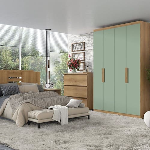 Seu interno possui ótima divisão com cabideiro, 2 gavetas internas e prateleiras. Ainda possui espaço para colocar sapatos e um amplo maleiro interligado, proporcionando espaço completo para acomodar os seus pertences de maneira organizada. Acabamento da Prateleira: Pintura UV Escala de Brilho da Prateleira: Semi-Brilho Acabamento da Gaveta: Pintura UV Escala de Brilho da Gaveta: Semi-Brilho Possui Organizador de Gaveta: Não Acabamento da Porta: Pintura UV Escala de Brilho da Porta: Semi-Fosco Material do Puxador da Porta: MDF Ambiente Principal: Quarto codigo_ean: 7900288118721 Complexidade da Montagem: Média: pode ser montado por mais de uma pessoa e/ou necessite de maior conhecimento para montagem Cor: Capuccino/Menta Cor do Produto: Capuccino/Menta Cor do Puxador: Marrom Cor Interna: Capuccino Escala de Brilho: Semi-Brilho Espessura da Estrutura (mm): 12 mm Espessura das Portas (mm): 15 mm Espessura das Prateleiras (mm): 12 mm Espessura do Fundo (mm): 3 mm Espessura do Fundo das Gavetas (mm): 3 mm Gaveta com Chave: Não Guarda-Roupa Suporta Até (kg): 96 kg Itens Inclusos: 1 Guarda-Roupa, Manual de Montagem e Kit de Ferragem Linha ou Coleção: Milan Manual de Especificação Técnica: https://product-hub-prd.madeiramadeira.com.br/992476/documents/2ddce7da-130b-4487-bc1d-36f20ffe3fd42968795128517488734346225.pdf Manual de Montagem e Instalação: https://product-hub-prd.madeiramadeira.com.br/992476/documents/f5812059-ba05-4d12-8b0e-707a24ae7efb2822389128517442279172233.pdf Marca: THB Móveis Material da Gaveta: MDF/MDP Material da Porta: MDP Material da Prateleira: MDP Material Principal: MDF/MDP modular: Não Montagem Flex: Não Necessita Montagem: Sim Nicho com Cabideiro: Sim Origem do Produto: Nacional Peso: 74,5 kg Peso Máximo por Gaveta: 5 kg Peso Máximo por Prateleira: 10 kg Porta Janelada: Não Possui Calceiros: Não Possui Capelinha: Não Possui Espaço para Vestidos Longos: Não Possui Espelho: Não Possui Espelho Interno: Não Possui Ganchos: Não Possui iluminação: Não Possui Painel de TV: Não Possui Penteadeira: Não Possui Pés: Não Possui Portas: Sim Possui Prateleiras: Sim Possui Sapateira: Não Produto Montado: Sim Quantidade de Cabideiros: 01 Cabideiro Quantidade de Gavetas: 02 Gavetas Quantidade de Prateleiras: 05 Prateleiras Recomendações de Uso, Manutenção e Limpeza: Para limpeza de seu móvel, use uma flanela seca e não utilize produtos químicos que possam danificar seu produto. Se possível, não encoste o móvel diretamente na parede, pois deixando um espaço entre o móvel e a parede haverá circulação de ar, mantendo o mesmo sempre arejado e sem ocorrência de mofo. Sistema de Montagem: Parafusos Suporta Até (kg): 96 kg Tipo de Corrediça da Gaveta: Metálica Simples Tipo de Dobradiça/Corrediça da Porta: Metálica Tipo de Gaveta: Interna Tipo de Guarda-Roupa: Solteiro Tipo de Puxador da Gaveta: Não Possui Tipo de Puxador da Porta: Externo Marca: Não Informado