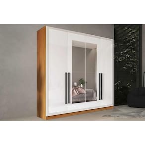 Material do Calceiro - Calceiro Metálico Material dos Cabideiros - Cabideira Metálico Tipo de Porta do Guarda-Roupa - Portas de Bater Material das Portas - Portas em MDF/MDP Diferenciais das Portas - Porta c/ Espelho Quantidade de Portas - 4 Portas de Abrir Quantidade de Portas com Espelho - 2 Portas com Espelho Tipo de Espelho - Espelho Externo Quantidade de Espelhos - 2 Espelhos Material das Gavetas - Gavetas em MDP Tipo de Corrediça - c/ Corrediças Telescópicas Quantidade de Gavetas - 4 Gavetas Tipo dos Pés - ABS/PVC Quantidade de Prateleiras - 6