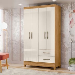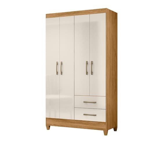 O guarda-roupa Chile, possui 4 portas e 2 gavetas laterais com corrediças metálicas. Produto em MDP, com puxadores na cor bronze. Ideal para quartos onde o espaço é compacto.