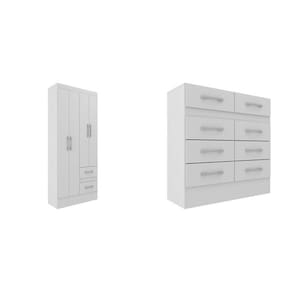 Fabricados em MDP FF 12 mm, ambos os móveis são leves e resistentes, com corrediças plásticas que garantem o funcionamento simples e eficiente das gavetas. Altura do Conjunto: 174 cm Ambiente: null Ambiente Principal: Quarto Cor: Branco Informação Complementar: 1x Guarda Roupas Solteiro 4 Portas 2 Gavetas Conde Branco Largura: 90 cm Altura: 174 cm Peso: 41 kg Profundidade: 35 cm Necessita Montagem: Sim