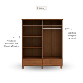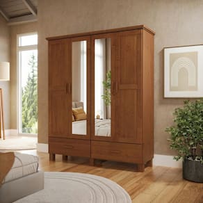 O Guarda-Roupa 4 portas 2 gavetas Bronze, produzido 100% em Madeira Maciça Taeda, na cor Castanho, traduz exatamente isso: presença, conforto e aquele clima de lar bem cuidado com a sua beleza atemporal que a madeira de verdade proporciona.