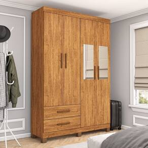 O Guarda-Roupa Genova 4 Portas 2 Gavetas Com Espelho e Pés, é ideal para quem procura um produto compacto e funcional. Possui 2,07m de altura, 1,185m de largura e 0,47m de profundidade combinado com 2 gavetas, 2 prateleiras e um grande cabideiro, deixando o produto com uma ótima divisão interna. O maleiro é ideal para guardar malas, cobertores, edredons. O cabideiro além de resistente, é ideal para pendurar pares de blusas, camisas acessórios. As prateleiras são perfeitas para colocar roupas como blusas, shorts, regatas, kits de maquiagem, toalhas, caixinhas com acessórios e bolsas menores. As gavetas fixadas sobre corrediças metálicas, são ideais para guardas blusas dobradas, shorts, malhas e roupas íntimas. Estrutura do produto em MDP.