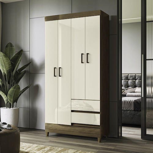 Amplas prateleiras, com muito mais espaço para guardar todas as roupas dobradas, caixas, sapatos, decoração, etc. e 02 amplas gavetas que deslizam sobre corrediças metálicas com suavidade garantindo qualidade ao móvel. O acabamento é em verniz brilhante, tudo feito dentro dos padrões de preservação do meio ambiente, com sustentabilidade. Possui pés em PVC, permitindo que o guarda-roupa fique elevado do chão, facilitando a limpeza embaixo dele. Acabamento da Prateleira: Pintura Escala de Brilho da Prateleira: Semi-Brilho Possui Cabideiros: Sim Acabamento da Gaveta: Pintura Escala de Brilho da Gaveta: Semi-Brilho Possui Organizador de Gaveta: Não Acabamento da Porta: Pintura Escala de Brilho da Porta: Semi-Brilho Material do Puxador da Porta: PVC Acabamento dos Pés: Pintura Altura dos Pés: 5 cm Altura Máxima dos Pés: 5.0000 Ambiente Principal: Quarto codigo_ean: 7909903613504 Complexidade da Montagem: Baixa: pode ser montado por uma pessoa sozinha Cor: Jequitibá/Off Cor do Produto: Jequitibá/Off Cor Flex: Não Cor Interna: Jequitibá Escala de Brilho: Semi-Brilho Gaveta com Chave: Não Itens Inclusos: Guarda Roupa, pés, acessórios e manual de montagem Linha ou Coleção: Fit Manual de Especificação Técnica: https://product-hub-prd.madeiramadeira.com.br/898252/documents/cfead5b4-517c-4ff1-886b-967eda5c2ad81847342guardaroupa42.pdf Manual de Montagem e Instalação: https://product-hub-prd.madeiramadeira.com.br/898252/documents/f77b0673-5511-483d-b8de-411d43a8db6b1847341946018grfit42.pdf Material da Gaveta: MDP Material da Porta: MDP Material da Prateleira: MDP Material dos Pés: PVC Material Principal: MDP modular: Não Montagem Flex: Não Necessita Montagem: Sim Origem do Produto: Nacional Peso: 45,8 kg Peso Máximo por Gaveta: 3 kg Peso Máximo por Prateleira: 3 kg Possui Calceiros: 01 Possui Espaço para Vestidos Longos: Não Possui Espelho: Não Possui Espelho Interno: Não Possui Ganchos: Não Possui iluminação: Não Possui Nichos: Não Possui Painel de TV: Não Possui Pés: 04 Possui Portas: Sim Possui Prateleiras: Sim Possui Sapateira: Não Produto Montado: Sim Quantidade de Gavetas: 02 Gavetas Quantidade de Prateleiras: 02 Prateleiras Recomendações de Uso, Manutenção e Limpeza: Não limpar com álcool ou qualquer outro produto químico, utilize somente pano seco ou levemente umedecido. Sapatas Niveladoras: Não Sistema de Montagem: Parafusos e cavilhas Tipo de Corrediça da Gaveta: Metálica Simples Tipo de Dobradiça/Corrediça da Porta: Metálica Tipo de Gaveta: Externa Tipo de Guarda-Roupa: Casal Tipo de Puxador da Gaveta: Não Possui Tipo de Puxador da Porta: Externo