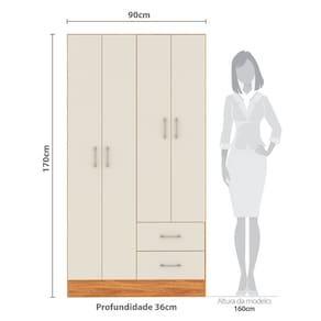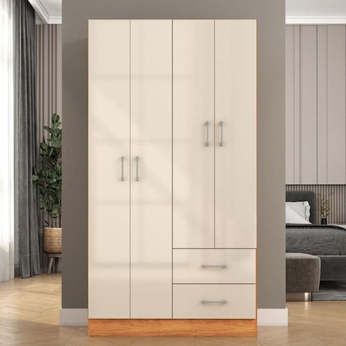Guarda-roupa 4 Portas 2 Gavetas Panamá Cinamomo/Off White - Bege
