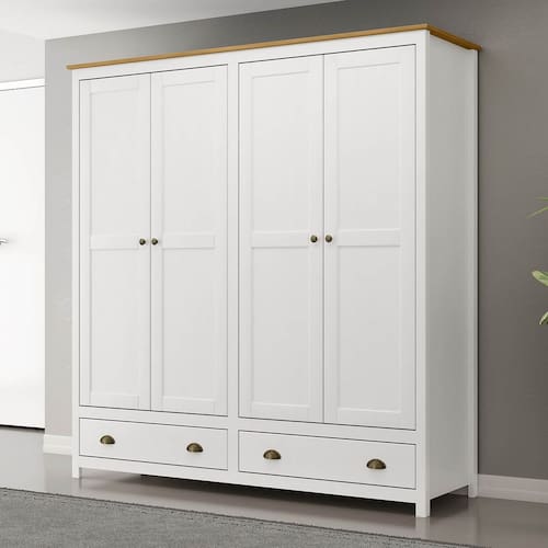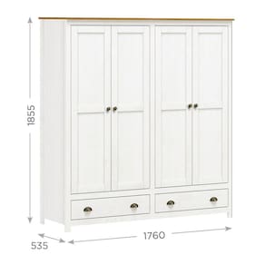 Guarda-Roupa 4 Portas 2 Gavetas Topázio Madeira Pinus Branco/Freijó - Finestra