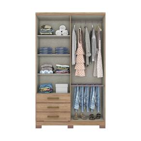 FICHA TÉCNICA: Cor Interna: Nas versões Off White, Jequitibá Brilho e Castanho é Trama, na versão Branco é Trama Branco. Acabamento: Nas versões Off White, Jequitibá Brilho e Branco a Pintura é UV e na versão Castanho a Pintura é UV Texturizada Escala de Brilho: Nas versões Branco e Off White é Brilho e na versão Castanho HP é Fosco. Material Principal: MDF Qtd. Gavetas: 3 Und Peso Máximo por Gaveta: Cada gaveta suporta até 3 Kg, a carga deve ser distribuída uniformemente. Material do Puxador Gaveta: ABS Material da Corrediça: Metálica Simples Material da Gaveta: MDP Qtd. Portas: 4 Und Material das Portas: MDP Material da Dobradiça: Metálica Material do Puxador Porta: ABS Tipo Porta: Bater Qtd. Prateleiras: 3 Und Peso Máximo por Prateleira: A Prateleira suporta até 8 Kg, a carga deve ser distribuída uniformemente. Material da Prateleira: MDP Qtd. Pés: 6 Und Pés Reguláveis: Não Possui Material Pés: ABS Altura Pés/Rodapés: 5 Cm Possui Rodízios: Não Possui Produto Suporta até -Kg-: 65 Kg Possui Vidro: Não Possui Possui Espelho: Não Possui Possui Espaço para Vestidos Longos: Sim Possui Iluminação: Não Possui Ganchos: Não Medidas Montado: -A x L x P- 200 x 121 x 46,5 Cm Peso Montado: 68 Kg