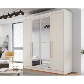 Guarda Roupa Solteiro 3 Gavetas e 4 Portas c/2 Espelho Nantes Off White - Europa