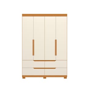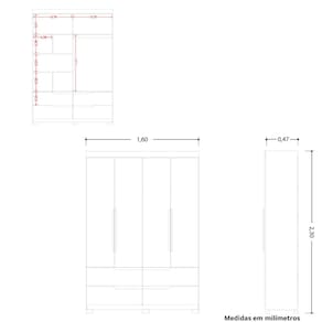 Características: Estrutura em MDP 4 portas de dobradiça 4 gavetas com corrediças telescópicas Puxadores em MDF revestidos 1 cabideiro em alumínio Pés inclusos
