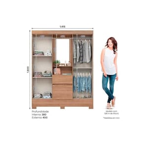 Dimensões(Cm): Comnto(Profundidade): 39,5cm x Largura: 141,5cm x Altura: 180cm