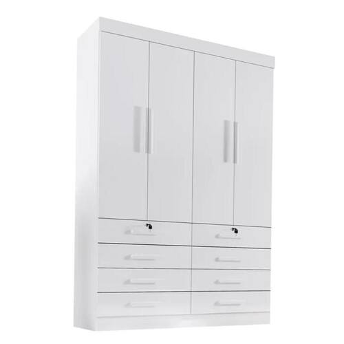 Guarda Roupa 4 Portas 8 Gavetas Mônaco D'Doro Branco