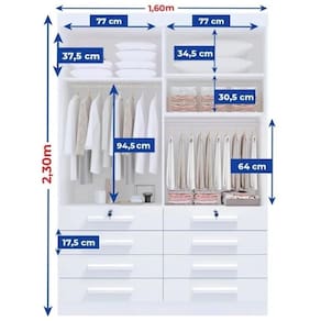 - Itens Inclusos: 1 Guarda-roupas solteiro, Kit Ferragens e Manual de Montagem;