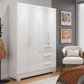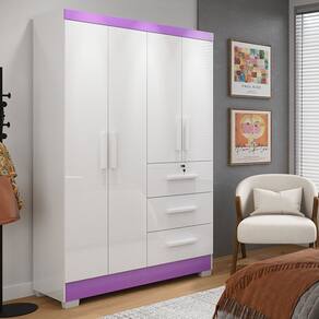 O roupeiro Amanda apresenta um design moderno e elegante, com acabamento sofisticado que combina praticidade e estilo. Seu layout funcional conta com quatro portas e gavetas amplas, proporcionando excelente organização para roupas e acessórios. As alças destacam-se pelo visual contemporâneo, enquanto o acabamento liso e brilhante confere um toque de requinte ao ambiente. Ideal para quartos que valorizam conforto e boa estética, é uma peça versátil e durável, que se adapta facilmente a diferentes estilos de decoração. Acabamento da Prateleira: Pintura UV Escala de Brilho da Prateleira: Brilhante Possui Cabideiros: Sim Acabamento da Gaveta: Pintura UV Escala de Brilho da Gaveta: Brilhante Material do Puxador da Gaveta: Madeira Maciça Possui Organizador de Gaveta: Não Acabamento da Porta: Pintura UV Escala de Brilho da Porta: Brilhante Material do Puxador da Porta: MDF Altura dos Pés: 5 cm Altura Máxima dos Pés: 5.0000 Ambiente Principal: Quarto codigo_ean: 7900288281388 Complexidade da Montagem: Alta: deve ser montado por um montador especializado Cor: BRANCO - BRANCO / LILÁS Cor do Produto: BRANCO - BRANCO / LILÁS Cor do Puxador: Branco Cor Flex: BRANCO - BRANCO / LILÁS Cor Interna: BRANCA Escala de Brilho: Brilhante Espessura da Estrutura (mm): 12 mm Espessura das Portas (mm): 12 mm Espessura das Prateleiras (mm): 12 mm Espessura do Fundo (mm): 3 mm Espessura do Fundo das Gavetas (mm): 445 mm Gaveta com Chave: Sim Itens Inclusos: 1 Guarda-Roupa, Kit Ferragens e Manual de Montagem Linha ou Coleção: Amanda Manual de Montagem e Instalação: https://product-hub-prd.madeiramadeira.com.br/556394009/documents/162d6236-31d3-422c-880a-318283343ed6330604186717619106547351.pdf Marca: J&A Móveis Material da Gaveta: MDP Material da Porta: MDP Material da Prateleira: MDP Material dos Pés: Plástico Material Principal: MDP modular: Não Montagem Flex: NÃO Necessita Montagem: Sim Nicho com Cabideiro: Sim Origem do Produto: Nacional Peso: 66 kg Peso Máximo por Gaveta: 7 kg Peso Máximo por Prateleira: 6 kg Porta Janelada: Não Possui Calceiros: Não Possui Espelho: Não Possui Pés: 04 Possui Portas: Sim Possui Prateleiras: Sim Produto Montado: Sim Quantidade de Cabideiros: 01 Cabideiro Quantidade de Gavetas: 03 Gavetas Quantidade de Prateleiras: 03 Prateleiras Recomendações de Uso, Manutenção e Limpeza: LIMPEZA COM PANO SECO Sapatas Niveladoras: Não Sistema de Montagem: PARAFUSOS, BUCHA, PORCA Suporta Até (kg): 40 kg Tipo de Corrediça da Gaveta: Metálica Telescópica Tipo de Dobradiça/Corrediça da Porta: Metálica Tipo de Gaveta: Externa Tipo de Guarda-Roupa: Solteiro Tipo de Puxador da Gaveta: Externo Tipo de Puxador da Porta: Externo