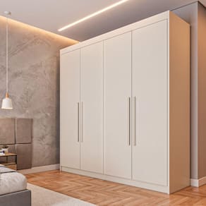 Guarda Roupa 4 Portas Aurora Móveis Europa Off White O Guarda Roupa 4 Portas Aurora Moveis Europa e a escolha perfeita para quem deseja um ambiente organizado e repleto de estilo. Com um design sofisticado e funcional, suas costas parafusadas proporcionam maior estabilidade e resistencia. Os puxadores externos em madeira, grandes e elegantes, conferem um toque especial ao movel. O roupeiro conta com compartimentos estrategicos para malas e roupas de cama, otimizando cada espaco do guarda-roupa, alem de uma sapateira com corredicas telescopicas, ideal para manter os calcados sempre organizados e acessiveis.