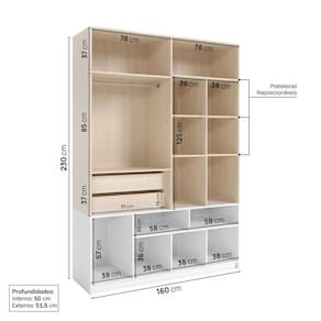 Itens Inclusos: 1 Guarda-Roupa, Manual de Montagem e Kit Ferragens