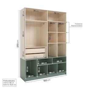 Informações Complementares: Produto possui 6 Nichos dando autonomia às crianças no dia a dia. Os nichos superiores suportam até 3kg, enquanto os inferiores até 5kg cada; O cabideiro suporta até 10kg.