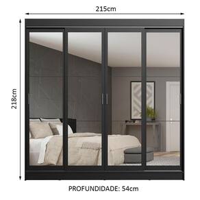 Medidas totais do guarda-roupa: 218 cm de altura x 215 cm de largura x 54 cm de profundidade.