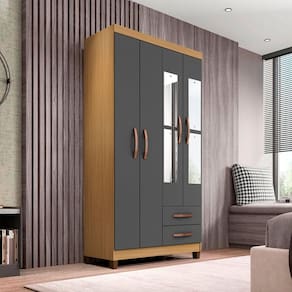 Apresentamos o incrível Guarda Roupa 4 Portas e 2 Gavetas Com Espelho Manchester, uma peça de mobiliário que combina elegância, funcionalidade e durabilidade para transformar qualquer quarto em um espaço organizado e charmoso.