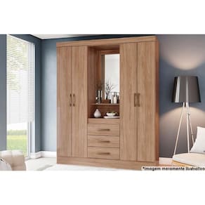 Guarda Roupa Solteiro 4 Portas e 3 Gavetas c/ 1 Espelho Briz B24 Jequitibá - Henn