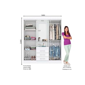 Tipo de Cabideiro - Aéreo Material dos Cabideiros - Cabideira Metálico Diferenciais das Portas - Porta c/ Espelho Tipo de Corrediça - c/ Corrediças Metálicas Quantidade de Gavetas - 3