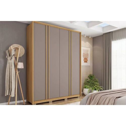 Material do Calceiro - Calceiro Metálico Tipo de Cabideiro - Aéreo Material dos Cabideiros - Cabideira Metálico Tipo de Porta do Guarda-Roupa - Portas de Bater Material das Portas - Portas em MDF/MDP Quantidade de Portas - 4 Portas de Abrir Tipo de Corrediça - c/ Corrediças Metálicas Quantidade de Gavetas - 3 Tipo dos Pés - ABS/PVC Quantidade de Pés - 8 pés Material das Prateleiras - Prateleiras em MDF/ MDP Quantidade de Prateleiras - 9 Quantidade de Nichos - 2 Nichos