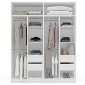 O guarda-roupa 4 portas 4 gavetas da linha Valência, da Politorno Móveis, é a combinação perfeita de elegância, funcionalidade e amplo espaço de armazenamento. Com 200 cm de altura, 161,1 cm de largura e 46 cm de profundidade, oferece grande capacidade para organizar roupas, calçados e acessórios de maneira eficiente. Fabricado em MDP/MDF, com acabamento em pintura UV e FF, garante alta resistência e durabilidade. Seu design é realçado pelos detalhes usinados e pelos puxadores externos, que oferecem praticidade. As gavetas possuem corrediças telescópicas, proporcionando um deslizamento suave e preciso. Além disso, o guarda-roupa conta com espelho, agregando sofisticação e ampliando visualmente o ambiente. Ideal para quem busca um guarda-roupa sofisticado e funcional para o quarto. Acabamento da Prateleira: Pintura UV Escala de Brilho da Prateleira: Semi-Fosco Acabamento da Gaveta: Pintura UV Escala de Brilho da Gaveta: Semi-Fosco Material do Puxador da Gaveta: MDF Possui Organizador de Gaveta: Não Acabamento da Porta: Pintura UV Escala de Brilho da Porta: Semi-Fosco Material do Puxador da Porta: MDF Acabamento dos Pés: Finish Foil Altura do Espelho: 150 cm Altura dos Pés: 0,37 cm Altura Máxima dos Pés: 0.3700 Ambiente Principal: Quarto codigo_ean: 7900288113177 Complexidade da Montagem: Média: pode ser montado por mais de uma pessoa e/ou necessite de maior conhecimento para montagem Cor: Branco/Creme Cor do Produto: Branco/Creme Cor do Puxador: Preto Cor Interna: Branco Escala de Brilho: Semi-Fosco Espessura da Estrutura (mm): 15 mm Espessura das Portas (mm): 15 mm Espessura das Prateleiras (mm): 15 mm Espessura do Espelho: 3 mm Espessura do Fundo (mm): 3 mm Espessura do Fundo das Gavetas (mm): 3 mm Fita Integrada: Sim Formato do Espelho: Retangular Gaveta com Chave: Não Itens Inclusos: 1 Guarda-Roupa, Manual de Montagem e Kit Ferragens Largura do Espelho: 30 cm Linha ou Coleção: Valência Manual de Montagem e Instalação: https://product-hub-prd.madeiramadeira.com.br/984435/documents/39efaed7-5cf3-4d79-be7b-e55cd2a93e2f2805750622417440473017904.pdf Marca: Politorno Material da Gaveta: MDF/MDP Material da Porta: MDF/MDP Material da Prateleira: MDF/MDP Material dos Pés: MDF Material Principal: MDF/MDP modular: Não Necessita Montagem: Sim Origem do Produto: Nacional Peso: 86,47 kg Peso Máximo por Gaveta: 5 kg Peso Máximo por Prateleira: 10 kg Possui Calceiros: Não Possui Espelho: Sim Possui Pés: Rodapé Possui Portas: Sim Possui Prateleiras: Sim Produto Montado: Sim Quantidade de Espelho: 04 Espelhos com Tamanhos Iguais Quantidade de Gavetas: 04 Gavetas Quantidade de Portas com Espelhos: 2 Portas com Espelho Quantidade de Prateleiras: 06 Prateleiras Recomendações de Uso, Manutenção e Limpeza: Utilize um pano macio umedecido com água e sabão neutro, seguido de pano seco. Não utilize produtos químicos ou abrasivos para limpeza, pois estes danificam o revestimento do móvel. Sapatas Niveladoras: Não Sistema de Montagem: Cavilha, Parafuso, Minifix e Prego Tipo de Corrediça da Gaveta: Metálica Telescópica Tipo de Dobradiça/Corrediça da Porta: Alumínio Tipo de Fixação do Espelho: Fita Dupla Face Tipo de Gaveta: Interna Tipo de Guarda-Roupa: Casal Tipo de Puxador da Gaveta: Externo Tipo de Puxador da Porta: Externo undefined: 984441