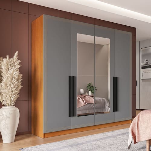 O guarda-roupa 4 portas 4 gavetas da linha Valência, da Politorno Móveis, é a combinação perfeita de elegância, funcionalidade e amplo espaço de armazenamento. Com 200 cm de altura, 161,1 cm de largura e 46 cm de profundidade, oferece grande capacidade para organizar roupas, calçados e acessórios de maneira eficiente. Fabricado em MDP/MDF, com acabamento em pintura UV e FF, garante alta resistência e durabilidade. Seu design é realçado pelos detalhes usinados e pelos puxadores externos, que oferecem praticidade. As gavetas possuem corrediças telescópicas, proporcionando um deslizamento suave e preciso. Além disso, o guarda-roupa conta com espelho, agregando sofisticação e ampliando visualmente o ambiente. Ideal para quem busca um guarda-roupa sofisticado e funcional para o quarto. Acabamento da Prateleira: Pintura UV Escala de Brilho da Prateleira: Semi-Fosco Acabamento da Gaveta: Pintura UV Escala de Brilho da Gaveta: Semi-Fosco Material do Puxador da Gaveta: MDF Possui Organizador de Gaveta: Não Acabamento da Porta: Pintura UV Escala de Brilho da Porta: Semi-Fosco Material do Puxador da Porta: MDF Acabamento dos Pés: Finish Foil Altura do Espelho: 150 cm Altura dos Pés: 0,37 cm Altura Máxima dos Pés: 0.3700 Ambiente Principal: Quarto codigo_ean: 7900288113269 Complexidade da Montagem: Média: pode ser montado por mais de uma pessoa e/ou necessite de maior conhecimento para montagem Cor: Freijó/Cinza Cor do Produto: Freijó/Cinza Cor do Puxador: Preto Cor Interna: Freijó Escala de Brilho: Semi-Fosco Espessura da Estrutura (mm): 15 mm Espessura das Portas (mm): 15 mm Espessura das Prateleiras (mm): 15 mm Espessura do Espelho: 3 mm Espessura do Fundo (mm): 3 mm Espessura do Fundo das Gavetas (mm): 3 mm Fita Integrada: Sim Formato do Espelho: Retangular Gaveta com Chave: Não Itens Inclusos: 1 Guarda-Roupa, Manual de Montagem e Kit Ferragens Largura do Espelho: 30 cm Linha ou Coleção: Valência Manual de Montagem e Instalação: https://product-hub-prd.madeiramadeira.com.br/984441/documents/cc03e063-ee03-4329-8f22-9bd00b9be2332806157622417440488571356.pdf Marca: Politorno Material da Gaveta: MDF/MDP Material da Porta: MDF/MDP Material da Prateleira: MDF/MDP Material dos Pés: MDF Material Principal: MDF/MDP modular: Não Necessita Montagem: Sim Origem do Produto: Nacional Peso: 86,47 kg Peso Máximo por Gaveta: 5 kg Peso Máximo por Prateleira: 10 kg Possui Calceiros: Não Possui Espelho: Sim Possui Pés: Rodapé Possui Portas: Sim Possui Prateleiras: Sim Produto Montado: Sim Quantidade de Espelho: 04 Espelhos com Tamanhos Iguais Quantidade de Gavetas: 04 Gavetas Quantidade de Portas com Espelhos: 2 Portas com Espelho Quantidade de Prateleiras: 06 Prateleiras Recomendações de Uso, Manutenção e Limpeza: Utilize um pano macio umedecido com água e sabão neutro, seguido de pano seco. Não utilize produtos químicos ou abrasivos para limpeza, pois estes danificam o revestimento do móvel. Sapatas Niveladoras: Não Sistema de Montagem: Cavilha, Parafuso, Minifix e Prego Tipo de Corrediça da Gaveta: Metálica Telescópica Tipo de Dobradiça/Corrediça da Porta: Alumínio Tipo de Fixação do Espelho: Fita Dupla Face Tipo de Gaveta: Interna Tipo de Guarda-Roupa: Casal Tipo de Puxador da Gaveta: Externo Tipo de Puxador da Porta: Externo