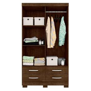 Feito em MDP 4 gavetas com corrediças telescópicas, 4 Portas, 2 prateleiras e 1 cabideiro.