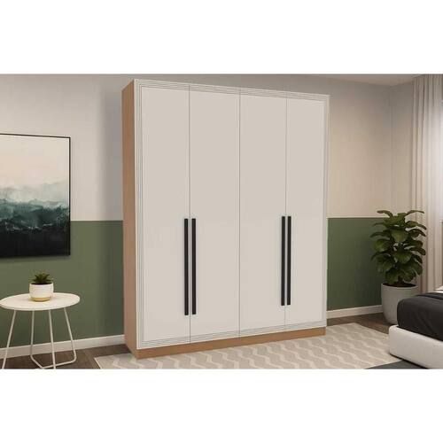 Guarda Roupa 4 Portas e 4 Gavetas Valência Freijo/Creme - Politorno - Blush