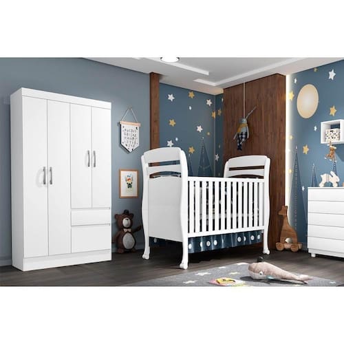 Guarda Roupa Solteiro Oregon c/ 4 Portas e 2 Gavetas Branco/Neve - Tcil Móveis