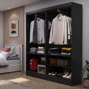 5 Nichos e 2 Prateleiras: Espaço interno bem distribuído para roupas, acessórios, calçados e objetos pessoais.