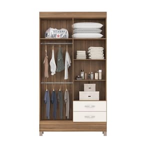 Guarda Roupa 4 Portas Udini Amendola Off-white Esse guarda roupa se destaca pela ótima configuração interna, devido às prateleiras e o maleiro, indicado para quartos de solteiro e juvenis Possui 4 portas e 2 gavetas externas, todas com corrediças telescópica