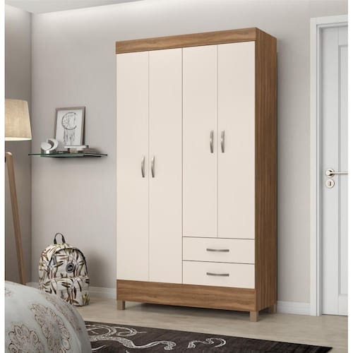 Esse guarda roupa se destaca pela ótima configuração interna, devido às prateleiras e o maleiro, indicado para quartos de solteiro e juvenis