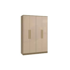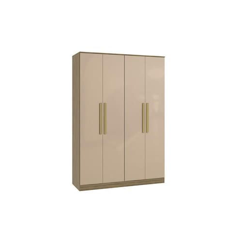 Acabamento: Pintura Brilho / Pintura Touch | Acabamento da Fita Borda: Papel | Cor: Nogueira/Macadâmia | Corrediças: Telescópicas | Dobradiça: Com Amortecimento | Garantia: 3 meses para defeito de fabricação | Gavetas: Internas | Matéria-prima: MDP | Peso suportado por cabideiro: 10 | Peso suportado por cada prateleira: 7 kg | Puxadores: MDF Revestido | Quantidade de calceiros: 2 | Quantidade de gavetas: 2 | Quantidade de portas: 4 | Quantidade de prateleiras: 6 | Sistema de montagem: Parafuso Philips / Parafuso Philips e Minifix | Tipo de porta: Bater