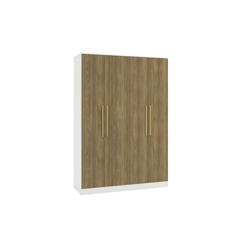 Acabamento: Pintura Brilho / Pintura Touch | Acabamento da Fita Borda: Papel | Cor: Branco/Nogueira | Corrediças: Telescópicas | Dobradiça: Com Amortecimento | Garantia: 3 meses para defeito de fabricação | Gavetas: Internas | Matéria-prima: MDP | Peso suportado por cabideiro: 10 | Peso suportado por cada prateleira: 7 kg | Puxadores: MDF Revestido | Quantidade de calceiros: 2 | Quantidade de gavetas: 2 | Quantidade de portas: 4 | Quantidade de prateleiras: 6 | Sistema de montagem: Parafuso Philips / Parafuso Philips e Minifix | Tipo de porta: Bater