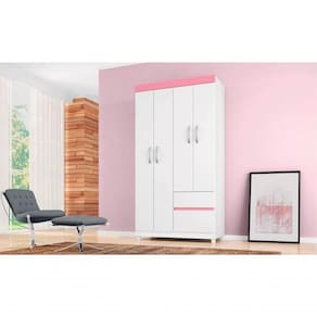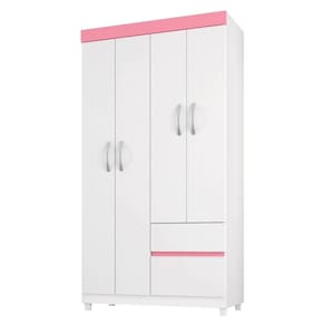 Guarda Roupa 4p Mainz Branco/rosa O Guarda Roupa é a escolha certa para o seu quarto, com amplo espaço para roupas