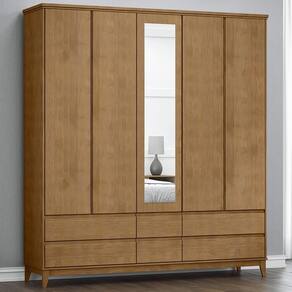 Guarda-roupa 5 Portas e 6 Gavetas com estrutura em MDF de 15mm (portas e gavetas em madeira maciça de pinus de reflorestamento), garantindo durabilidade e resistência, uma peça sofisticada e funcional, perfeita para manter tudo organizado com estilo. Pintura acetinada com verniz PU e UV, proporcionando beleza e proteção extra, possuindo 05 portas, sendo 01 central com espelho, equipadas com dobradiças com amortecimento, proporcionando fechamento sem impactos, além de 06 gavetas com corrediças telescópicas, permitindo abertura total e deslizamento suave e silencioso. Conta com 07 prateleiras internas e 01 cabideiro em alumínio, ideal para roupas e acessórios, puxadores cava e pés em madeira maciça, garantindo um toque refinado e elegante. Este móvel chegará em sua casa separado em 04 volumes.