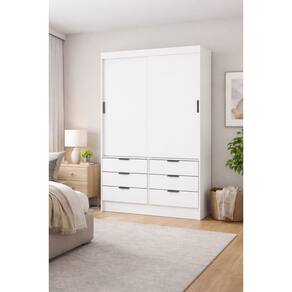 Características do Guarda-Roupa: • 2 portas, com visual clean e funcional.• 6 gavetas, proporcionando organização eficiente.• 2 prateleiras internas, para melhor aproveitamento do espaço.• Portas com deslizamento suave, garantindo conforto e praticidade no uso diário. Produzido em MDP 1 Cabideiro espaçoso