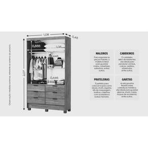 Particularidades do Guarda Roupa.: Altura.: 207 cm Largura.: 108 cm Profundidade.: 45 cm