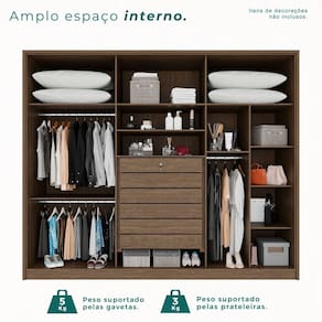 O Guarda-Roupa Anápolis Ripado 100% MDF Valverde Móveis, possui acabamento texturizado, moderno, encontrado apenas nas melhores fábricas de Minas. Este produto possui um contexto de conforto, qualidade e satisfação que atraem até os clientes mais exigentes, é um móvel conceitual e imponente, ele impressiona por sua grandiosidade, pelos espaços bem distribuídos e os detalhes pensados para atender à várias necessidades do usuário, são eles: puxadores em MDF alongados com design moderno e funcional, portas com dobradiças slow 35 mm, cabideiros e calceiro metálicos, nichos central para acessórios, sapateiras e espaço para longos, gavetas com corrediças telescópicas e uma gaveta cofre com chave, para acomodar os seus pertences e proporcionar a melhor organização do espaço e segurança. Acabamento da Prateleira: Pintura Texturizada UV Escala de Brilho da Prateleira: Fosco Possui Cabideiros: 03 Acabamento da Gaveta: Pintura Texturizada UV Possui Organizador de Gaveta: Não Acabamento da Porta: Pintura Texturizada UV Escala de Brilho da Porta: Fosco Ambiente Principal: Quarto Complexidade da Montagem: Alta: deve ser montado por um montador especializado Cor: New Canion/Off White Cor do Produto: New Canion/Off White Escala de Brilho: Fosco Informações Complementares: Porta com Ripado Itens Inclusos: 1 Guarda Roupa, kit ferragens e manual de montagem Linha ou Coleção: Anápolis Manual de Montagem e Instalação: https://cdn2.madeiramadeira.com.br/atributo/valverde/2375699-3528-17272109919741.pdf Material da Gaveta: MDF Material da Porta: MDF Material da Prateleira: MDF Material Principal: MDF modular: Não Montagem Flex: Sim, o cliente tem a opção de montar o interno de 2 formas. Necessita Montagem: Sim Origem do Produto: Nacional Peso: 225,5 kg Peso Máximo por Gaveta: 5 kg Peso Máximo por Prateleira: 3 kg Possui Calceiros: Não Possui Espelho: Não Possui Pés: Não Possui Portas: Sim Possui Prateleiras: Sim Recomendações de Uso, Manutenção e Limpeza: Pano levemente umedecido e pano seco. Não utilizar produtos de limpeza abrasivos. Sistema de Montagem: Parafusos, Cavilhas, Dobradiças e Puxadores. Tipo de Corrediça da Gaveta: Metálica Telescópica Tipo de Dobradiça/Corrediça da Porta: Metálica Tipo de Gaveta: Interna Tipo de Guarda-Roupa: Casal Tipo de Puxador da Gaveta: Não Possui Tipo de Puxador da Porta: Externo